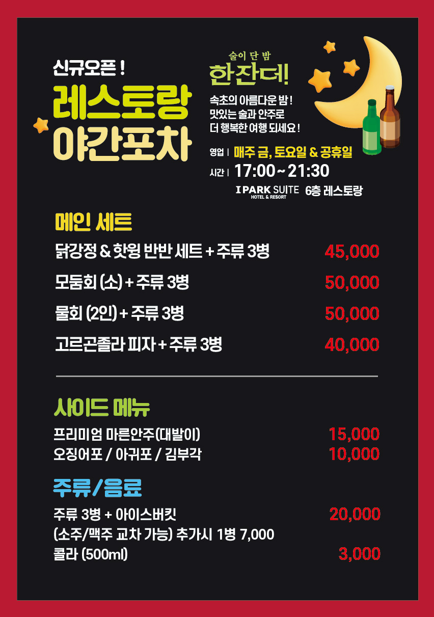 ㆍ룸서비스 : 10% 할인 (모든 메뉴 및 음료)